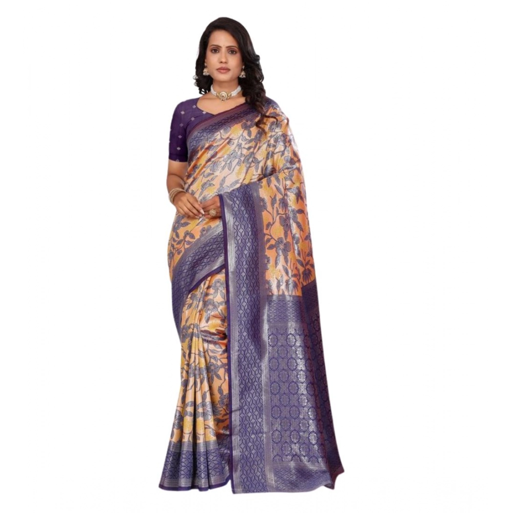 Generic Women’s Banarasi Silk Jaquard Woven Saree With Unstitched Blouse 5.5Mtr (Orange)