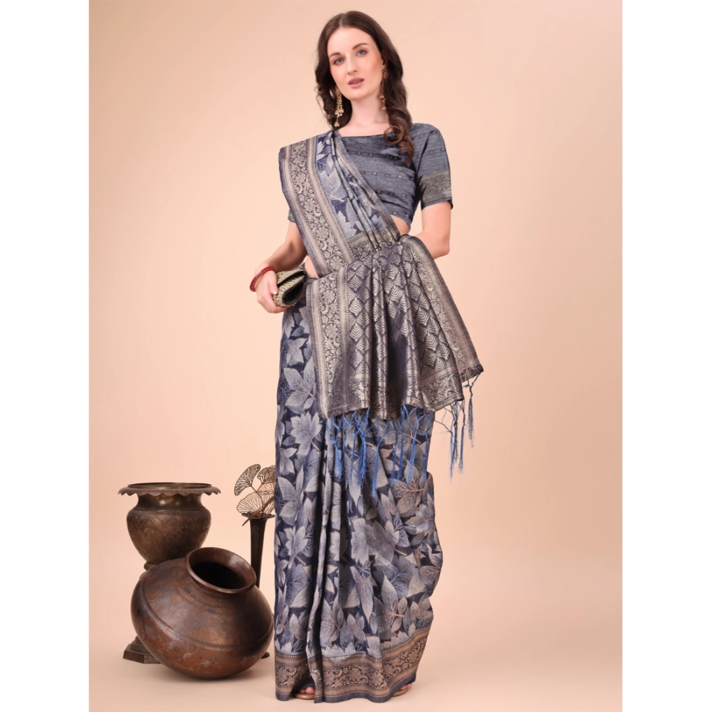Generic Women’s Cotton Printed Saree With Unstitched Blouse 5.5Mtr (Navy Blue)