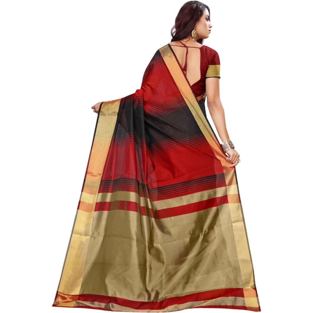 Generic Women’s Jacquard Woven Saree With Unstitched Blouse 5.5Mtr (Red-Black)
