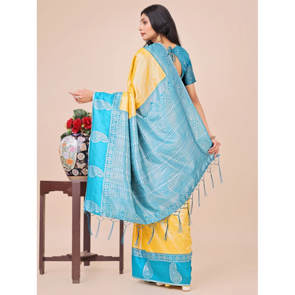 Generic Women’s Lichi Silk Printed Saree With Unstitched Blouse 5.5Mtr (Yellow)
