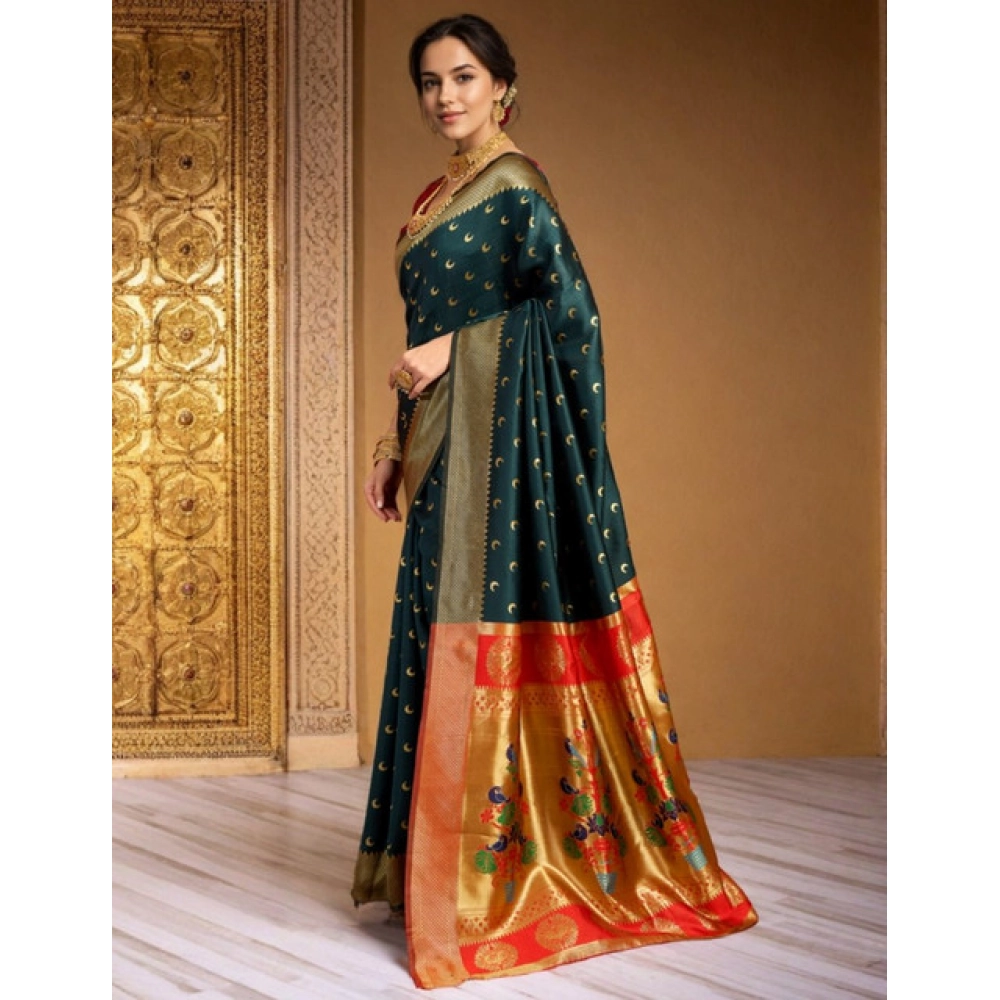 Women’s Silk Blend Zari Woven Saree With Unstitched Blouse