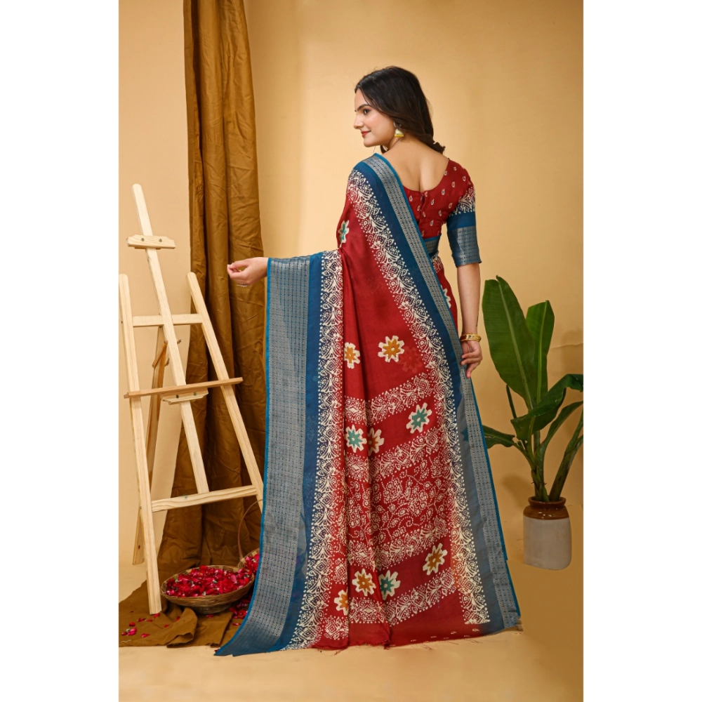 Generic Women’s Soft Blooming Marshmallow Fabric Kalamkari Printed Saree With Unstitched Blouse 5.5Mtr (Red)
