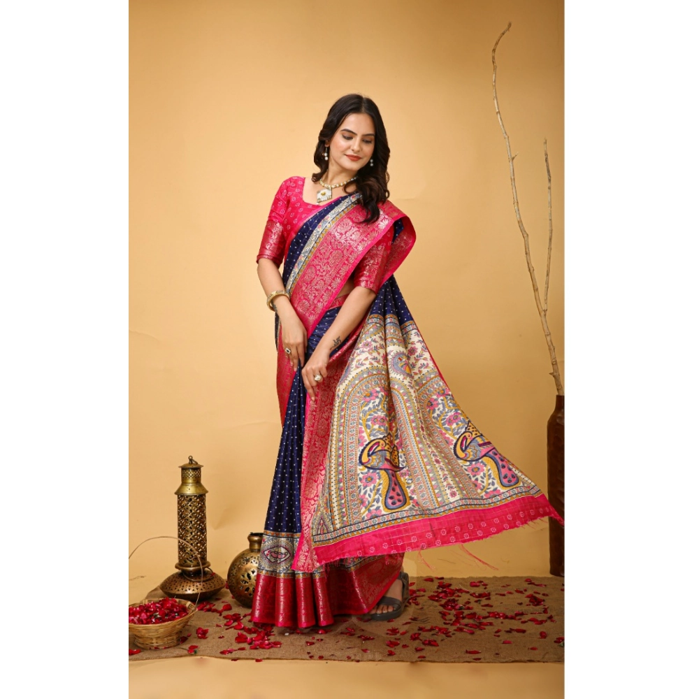 Women’s Soft Dola Cotton Kalamkari Printed Saree With Unstitched Blouse